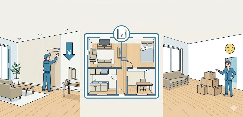 クロス張り替え工事では、作業前に家具や荷物を移動させる必要があります。業者に任せる場合、家具移動費や作業時間に応じた費用が発生することがあります。そのため、可能な範囲で事前に荷物を片付けておくことで、費用を抑えられる場合があります。小型家具や雑貨類をあらかじめ移動しておくだけでも作業効率が上がり、見積もり金額が下がることがあります。